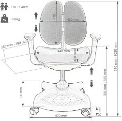 - Рекомендуемый рост ребенка от 110 до 170 см