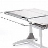 На этой парте размещается все необходимое для работы, так что во время творческого процесса Вам не придется прерываться на поиски нужных рабочих принадлежностей. Эффективность работы за столом зависит от того, насколько удобно расположены на его поверхности все рабочие принадлежности. Угол наклона рабочей поверхности можно плавно отрегулировать от 0° до 30° с помощью механизма "Газлифт", установив столешницу в наиболее удобном положении для выбранного вида работы. Сделать это без особых усилий при переходе от одного вида деятельности к другому может даже школьник. Остальная часть столешницы при этом остается неподвижной – на ней можно расположить все необходимые учебные и канцелярские принадлежности;