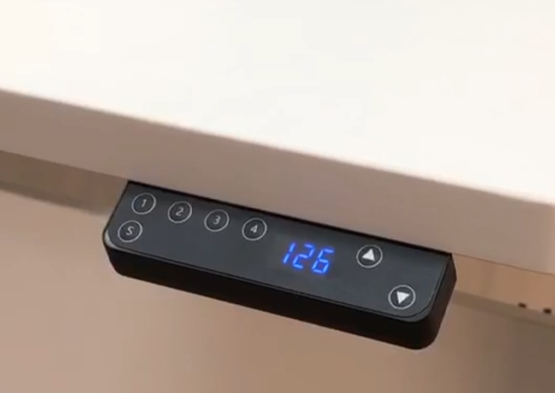 Пульт имеет 4 кнопки памяти высоты стола, а также защиту от встречи с препятствиями при опускании и при подъеме. Стол может управляться со смартфона.