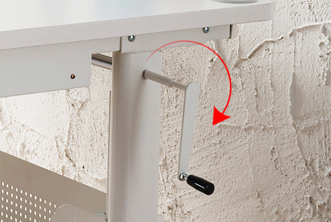 С помощью ручки можно легко отрегулировать высоту стола: поверните вправо, чтобы сделать выше - влево, чтобы сделать ниже.
