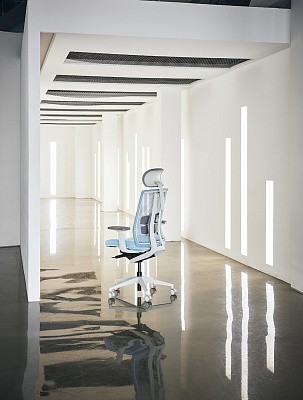 Спинка кресла снабжена особым поясничным упором, разработанным таким образом, чтобы пользователь мог плавно перемещать его даже сидя в кресле.