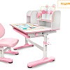 Главной особенностью комплекта является растущее кресло с двойной ортопедической спинкой и мягким съемным сиденьем, обтянутым мебельной дышащей тканью. Кресло регулируется по высоте и глубине специальными винтами. Максимальная нагрузка - 60 кг. На каркасе крепится ручка для удобного перемещения кресла по комнате.