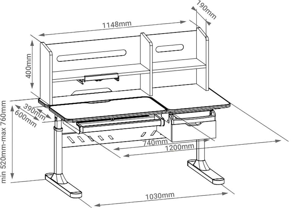 Вместительная надстройка в совокупности с тремя выдвижными ящиками, позволяет хранить все принадлежности для обучения в одном месте. Два из трех ящиков имеют секционное разделение, для комфортного хранения карандашей, ручек и прочей мелкой канцелярии.