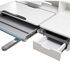 Стол имеет встроенную в надстройку, выдвижную подставку для книг, что позволяет сэкономить больше свободного места на рабочей поверхности.