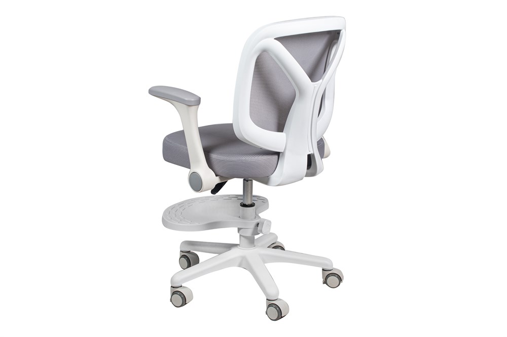 Оснащенное съемными подлокотниками и регулируемой подставкой для ног, кресло обеспечивает дополнительный комфорт и удобство. Подлокотники легко снимаются, если они не используются, а подставка для ног регулируется под рост и предпочтения ребенка, что снижает нагрузку на спину и ноги.