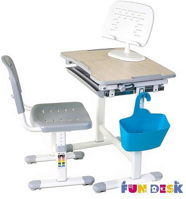 «ФанДеск» могут регулировать высоту парты под рост ребенка, а столешница может изменять угол наклона. Каждую модель можно оборудовать дополнительными аксессуарами. Парта «FunDesk» имеет множество ящиков для хранения канцелярских принадлежностей и тетрадей.