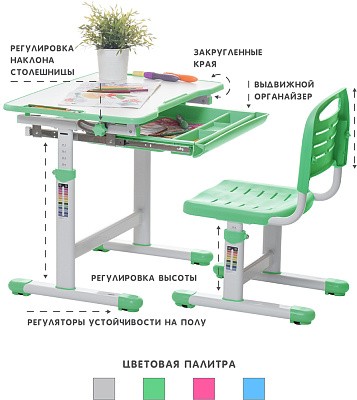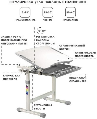 Парта (75 см.) + задняя двухъярусная приставка + боковая приставка 75 см