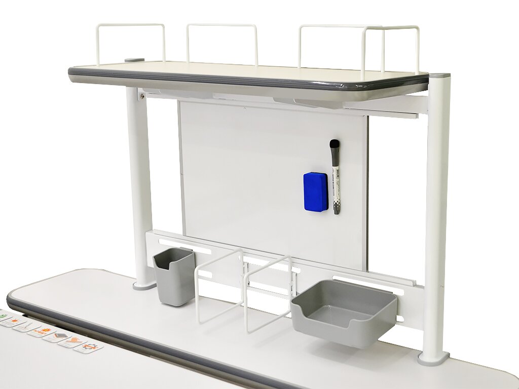 Полка также дополнена пластиковыми навесными пеналами для карандашей и прочих мелких канцтоваров. Пеналы изготовлены из прочного и безопасного ABS-пластика.