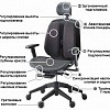 Кресла выполнены в черном цвете, что в сочетании с элементами настройки спинки, отделанными хромом, выглядит очень современно и статусно. На вкус покупателя, предоставляется четыре различных цвета обивочных материалов.