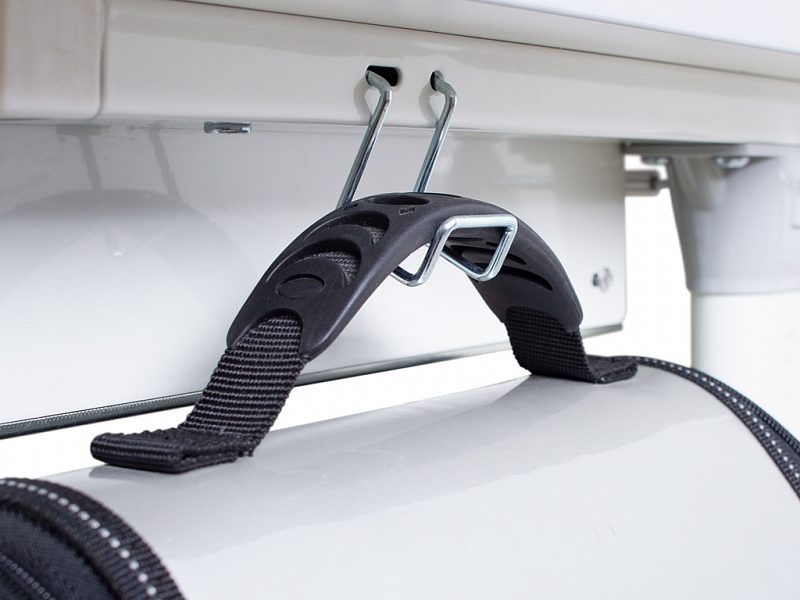 Сбоку, у стола крепится металлический крючок, на который ребенок может повесить портфель или спортивную форму.