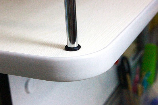 По краям полок сделаны металлические ограничители, чтобы располагать книги и другие принадлежности более устойчиво.