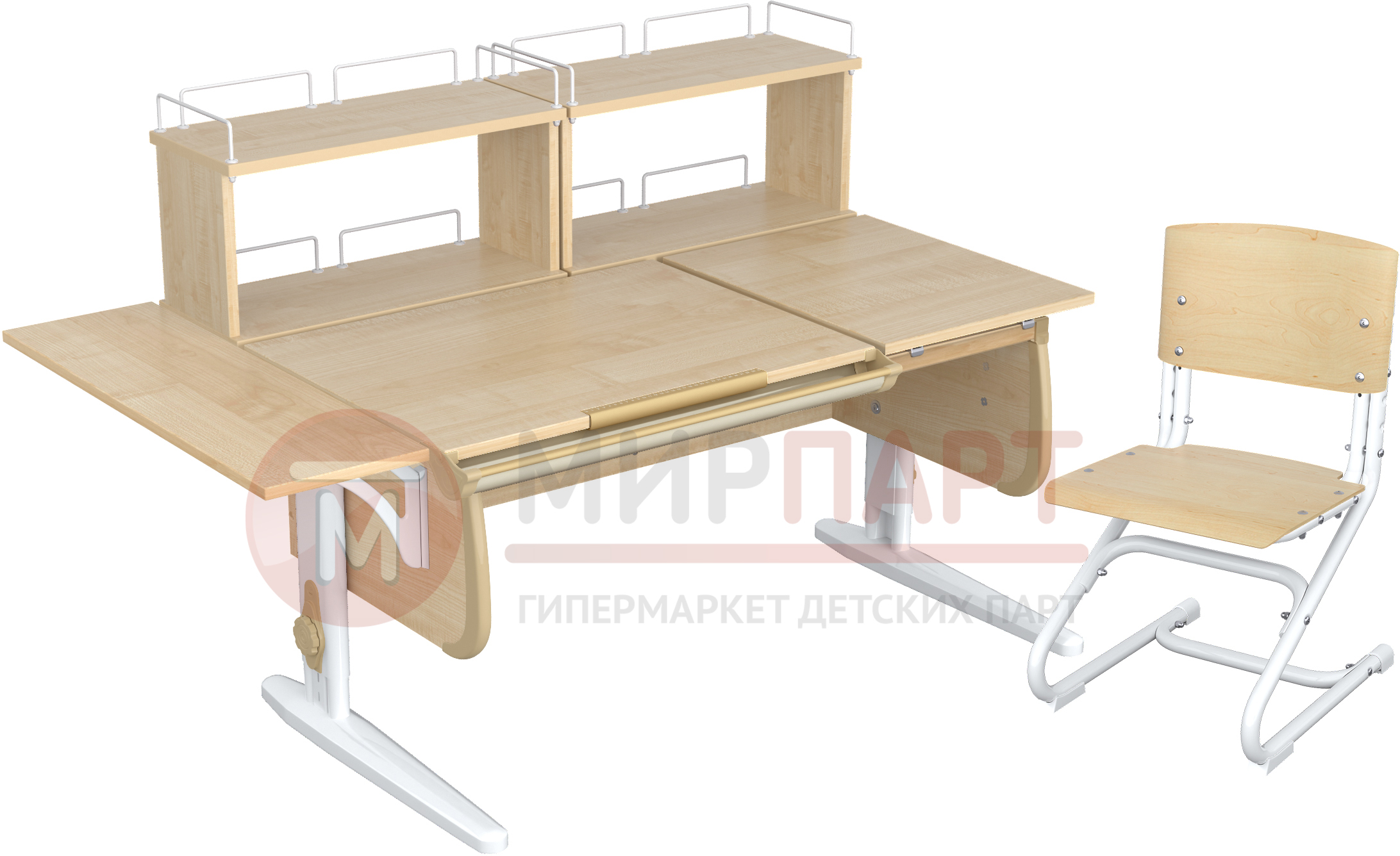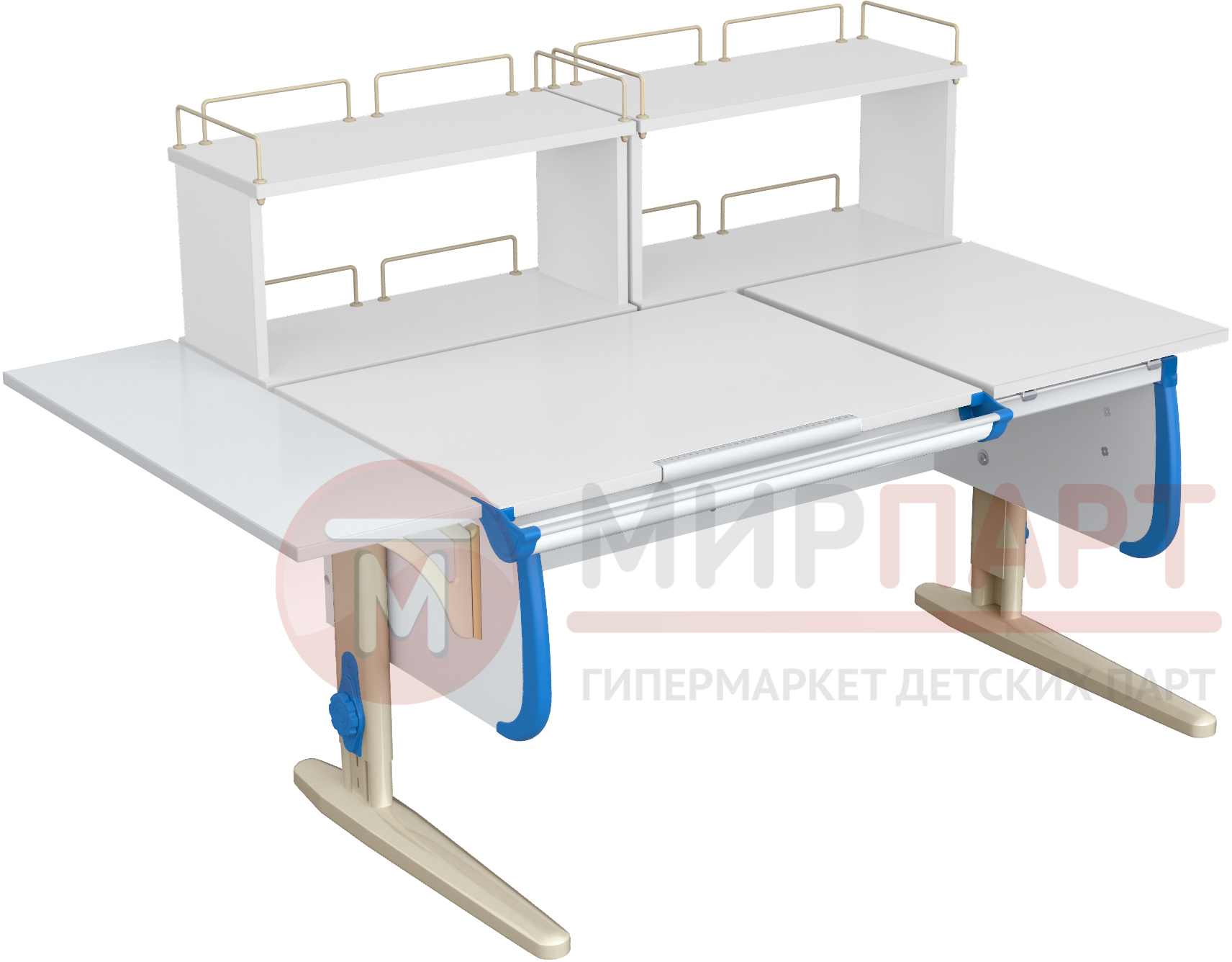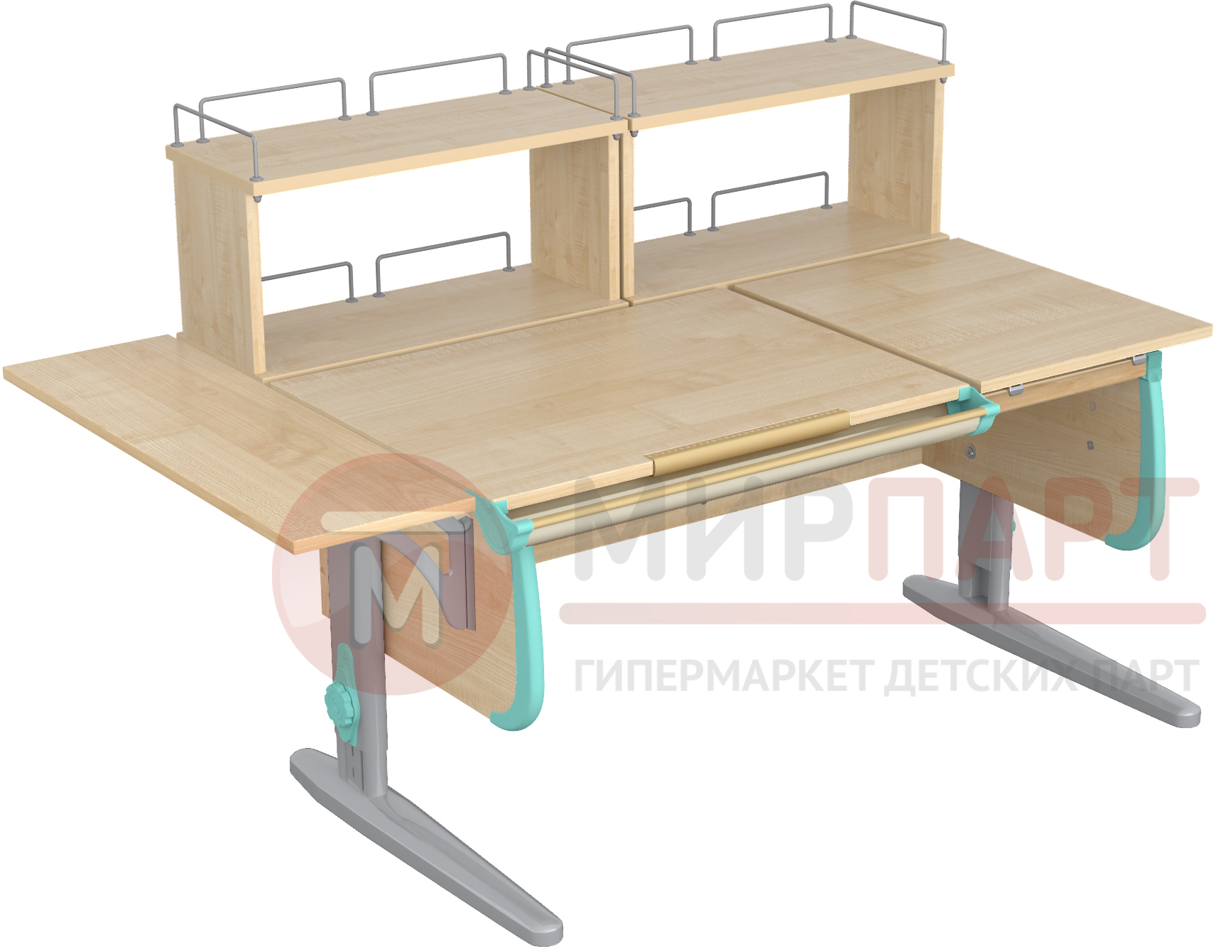 Парта 120 см с раздельной столешницей + 2 задние двухъярусные приставки + боковая приставка 75 см