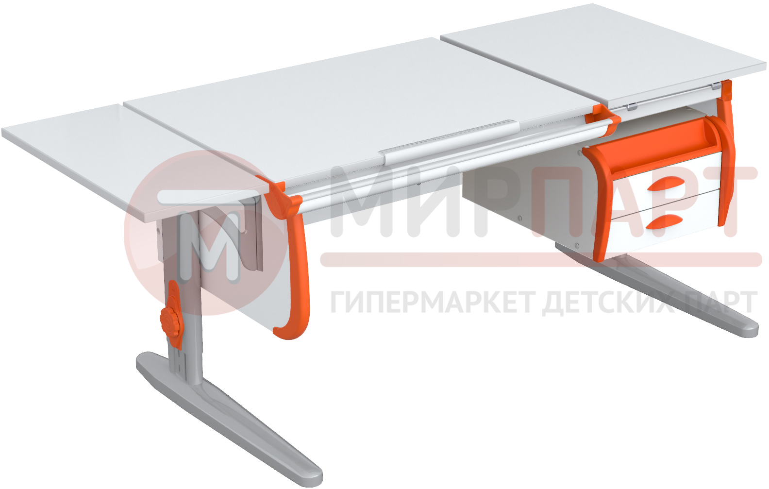 Парта 120 см с раздельной столешницей + тумба + короткая боковая приставка 55 см