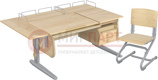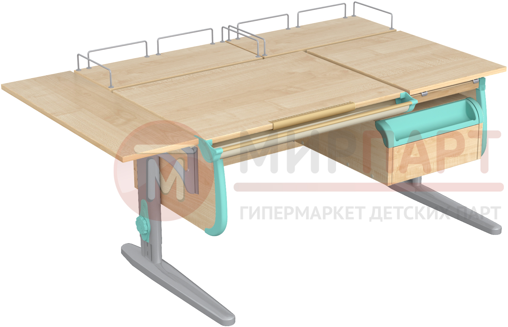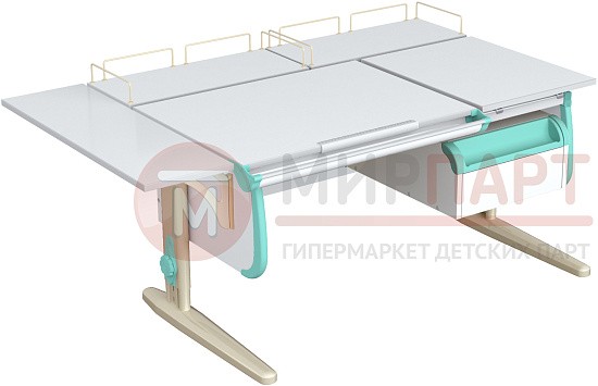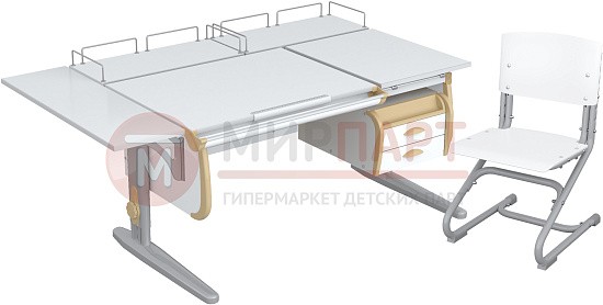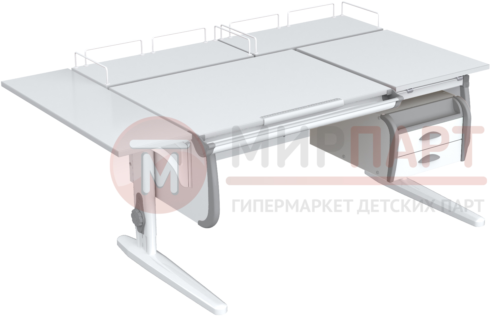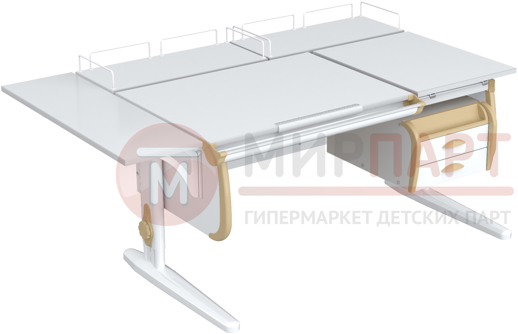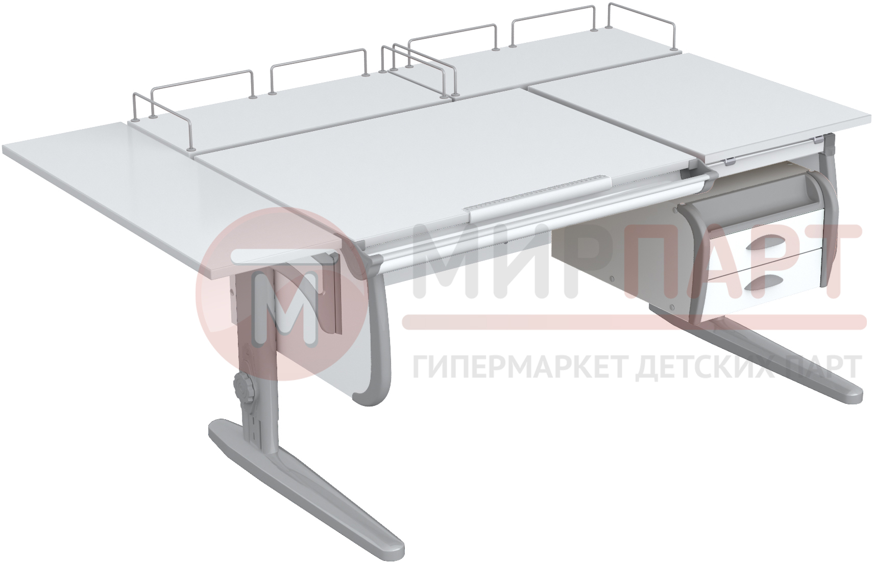Парта 120 см с раздельной столешницей + тумба + 2 задние приставки + боковая приставка 75 см