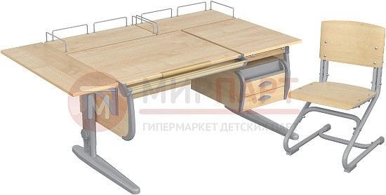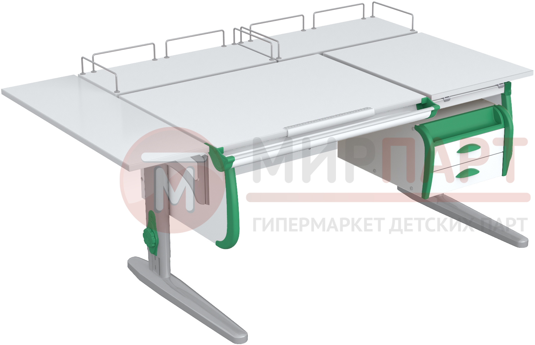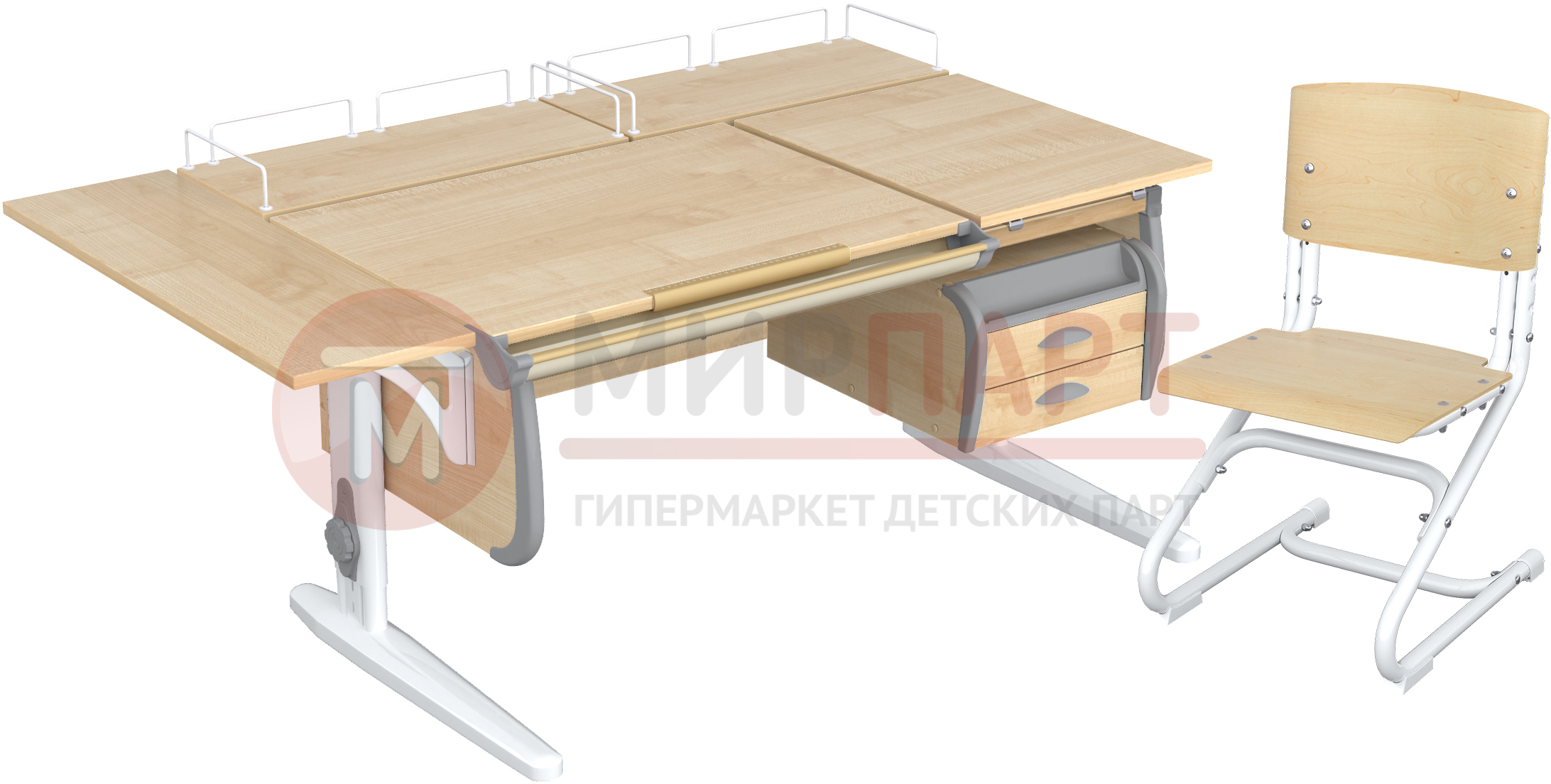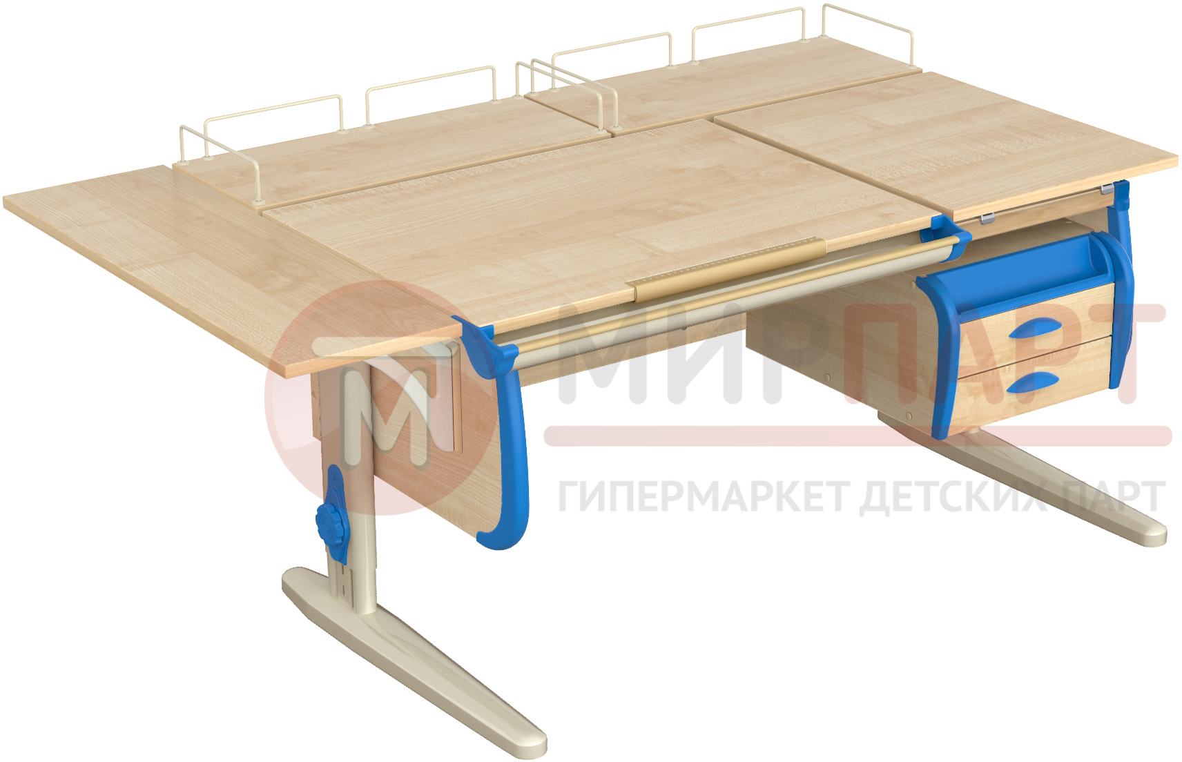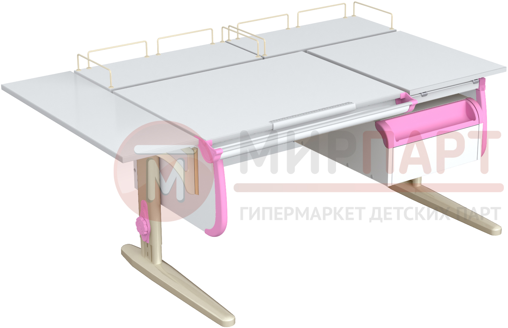 Парта 120 см с раздельной столешницей + тумба + 2 задние приставки + боковая приставка 75 см