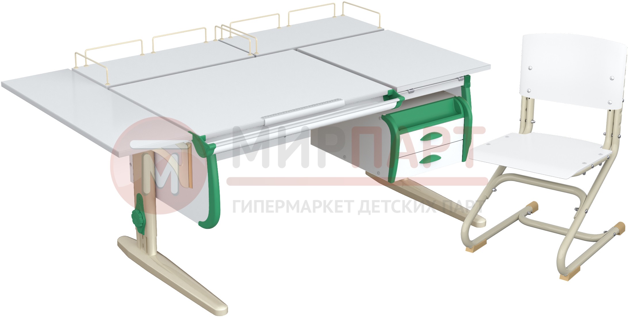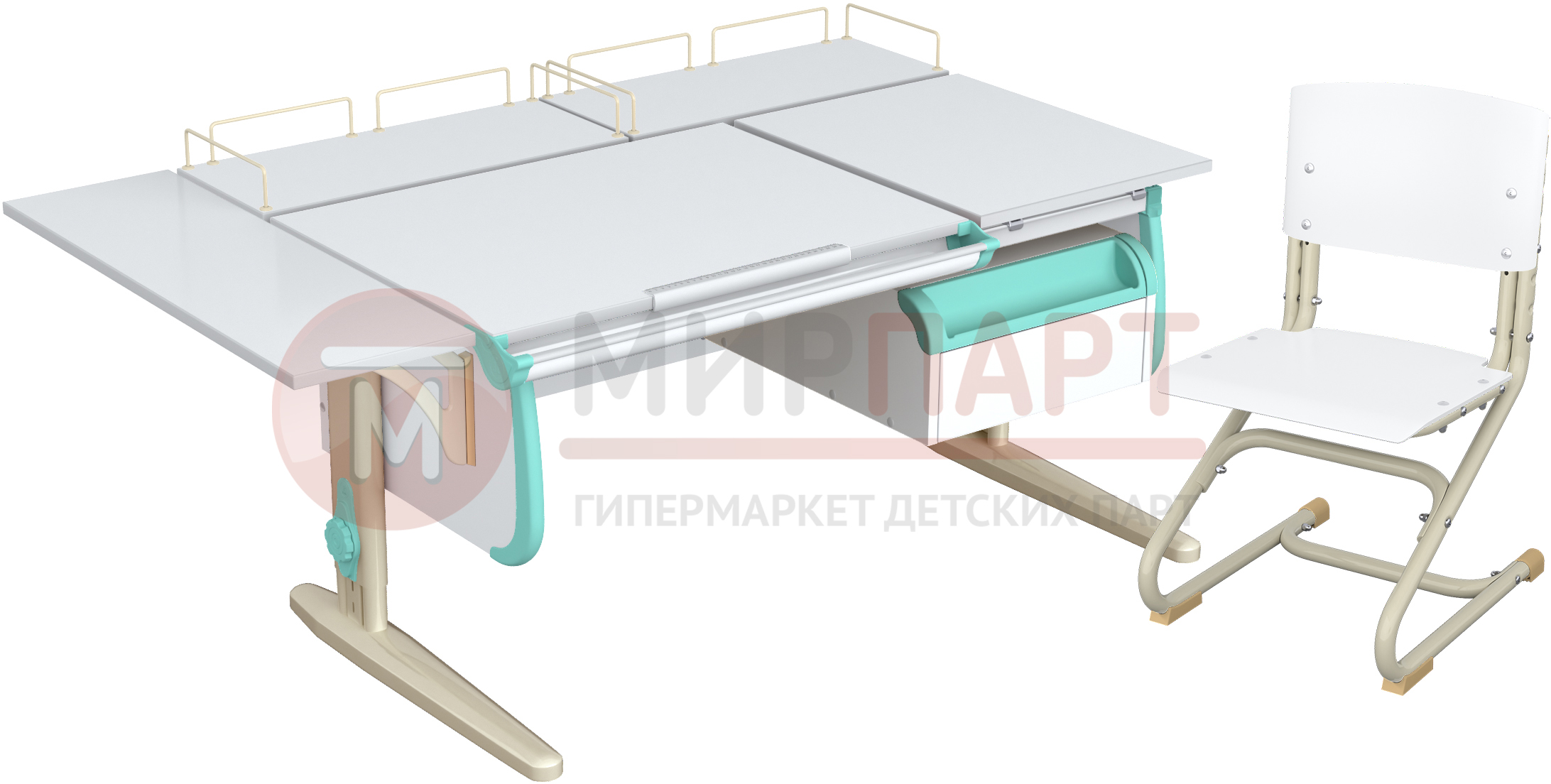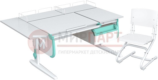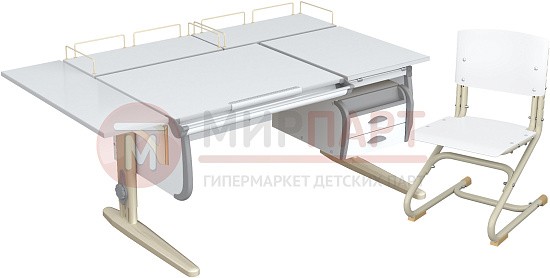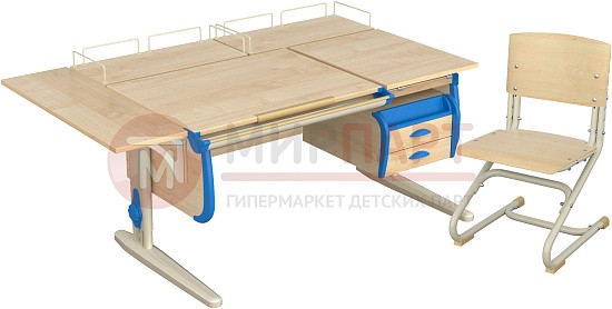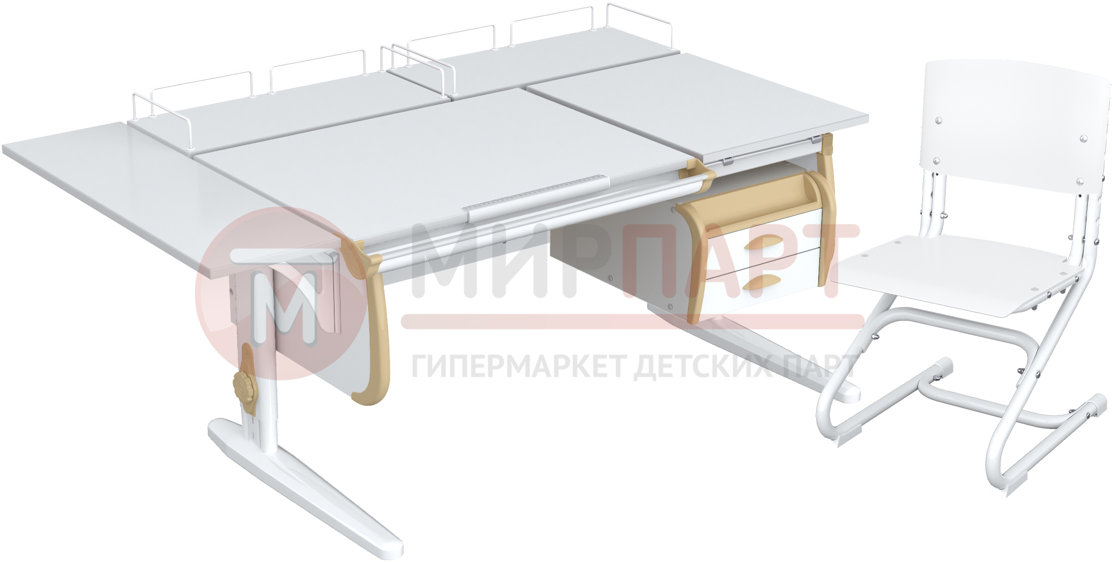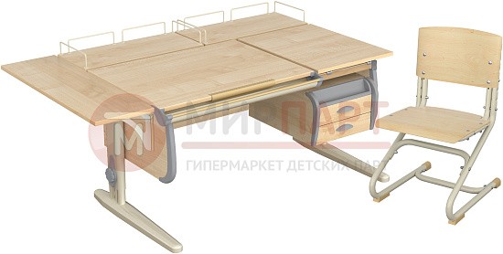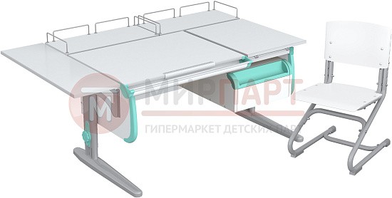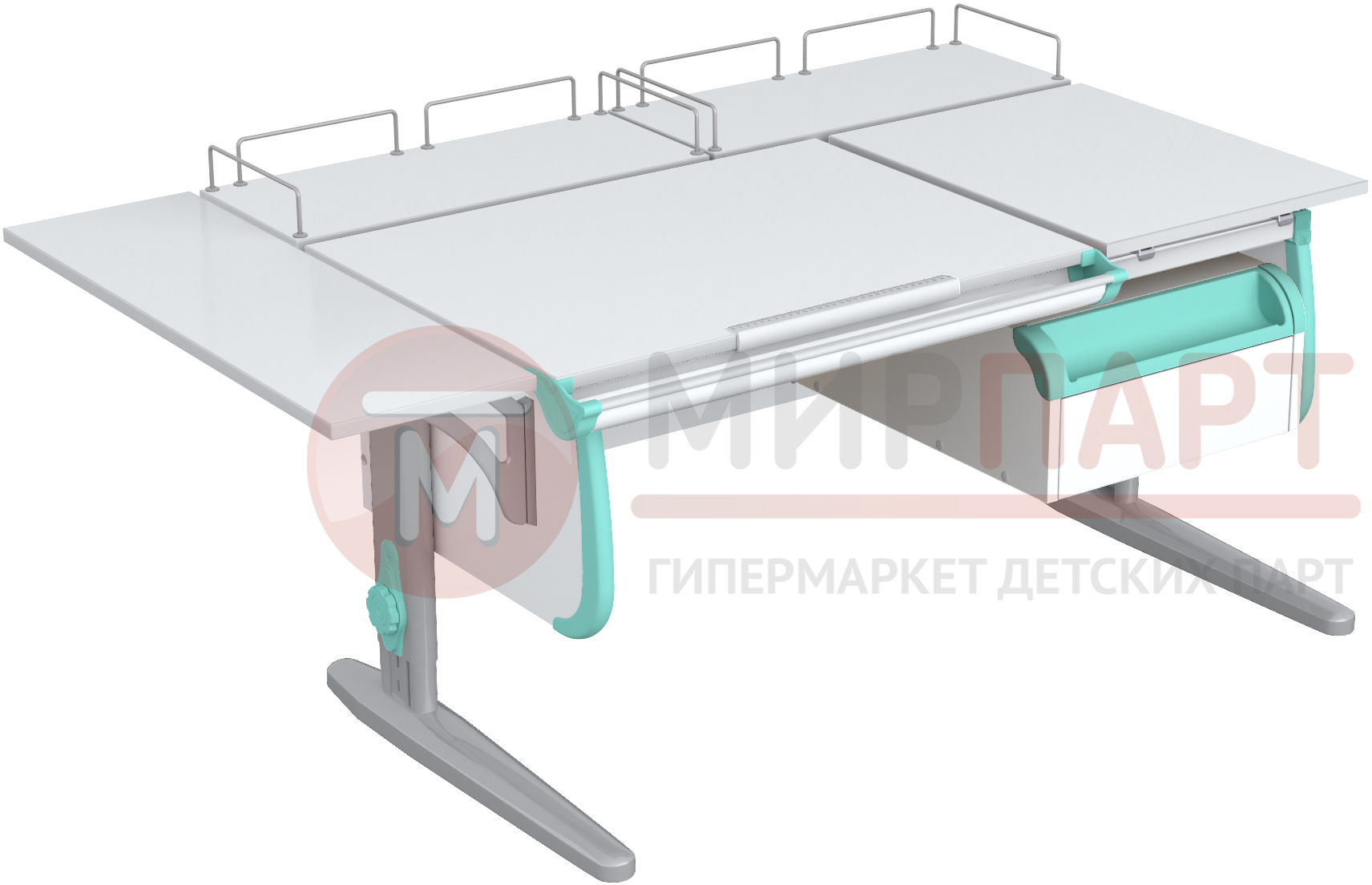 Парта 120 см с раздельной столешницей + тумба + 2 задние приставки + боковая приставка 75 см