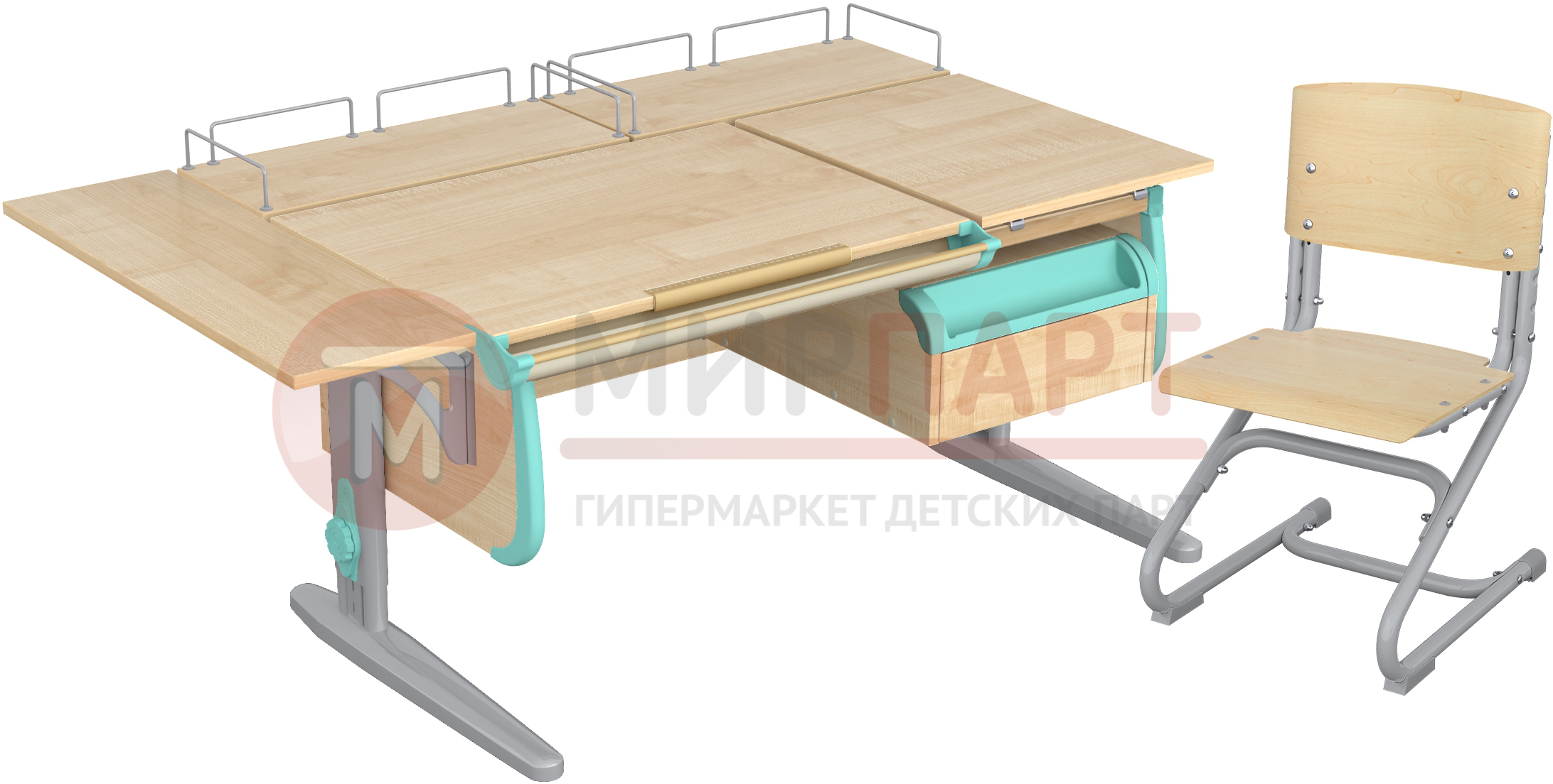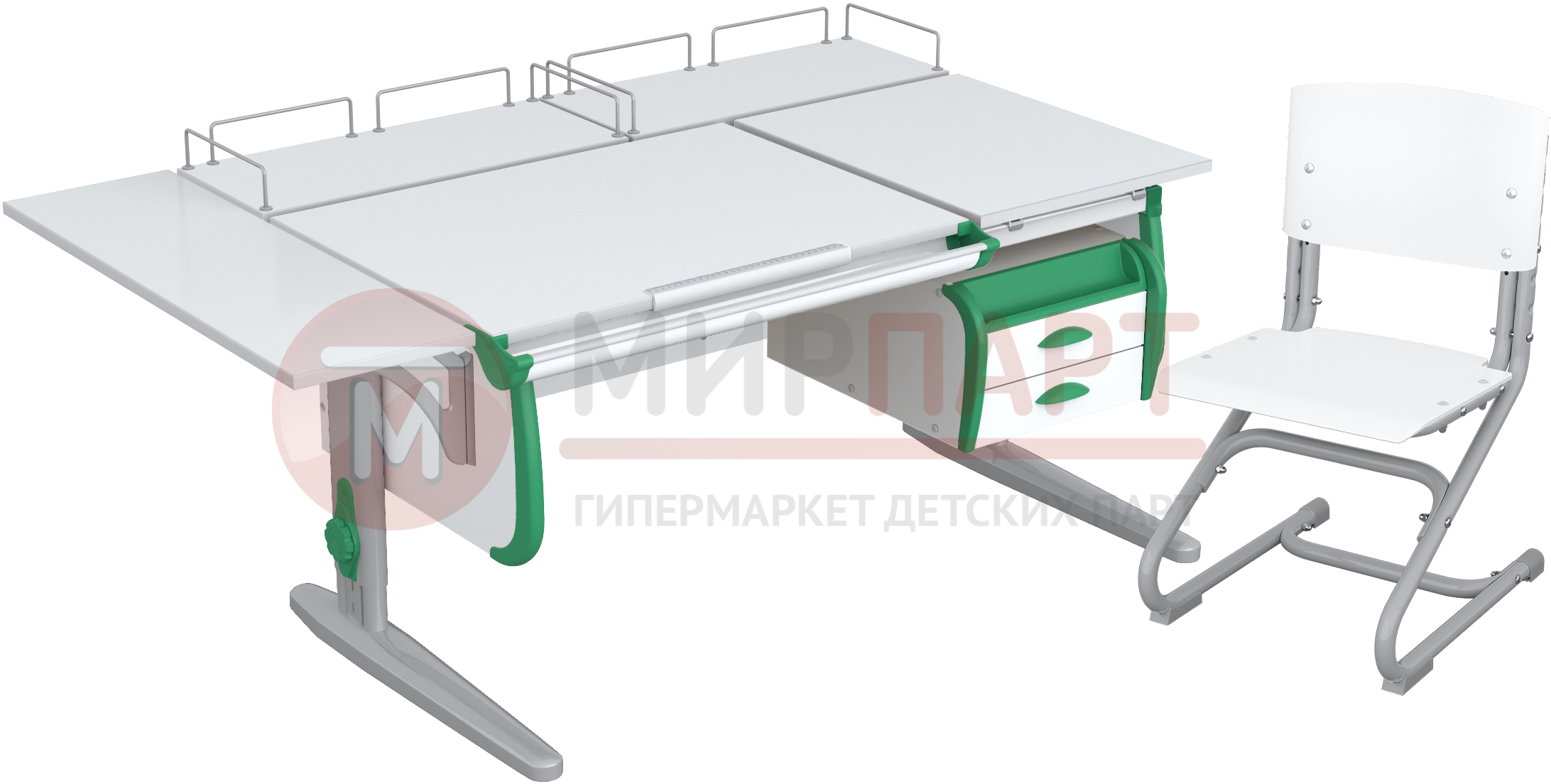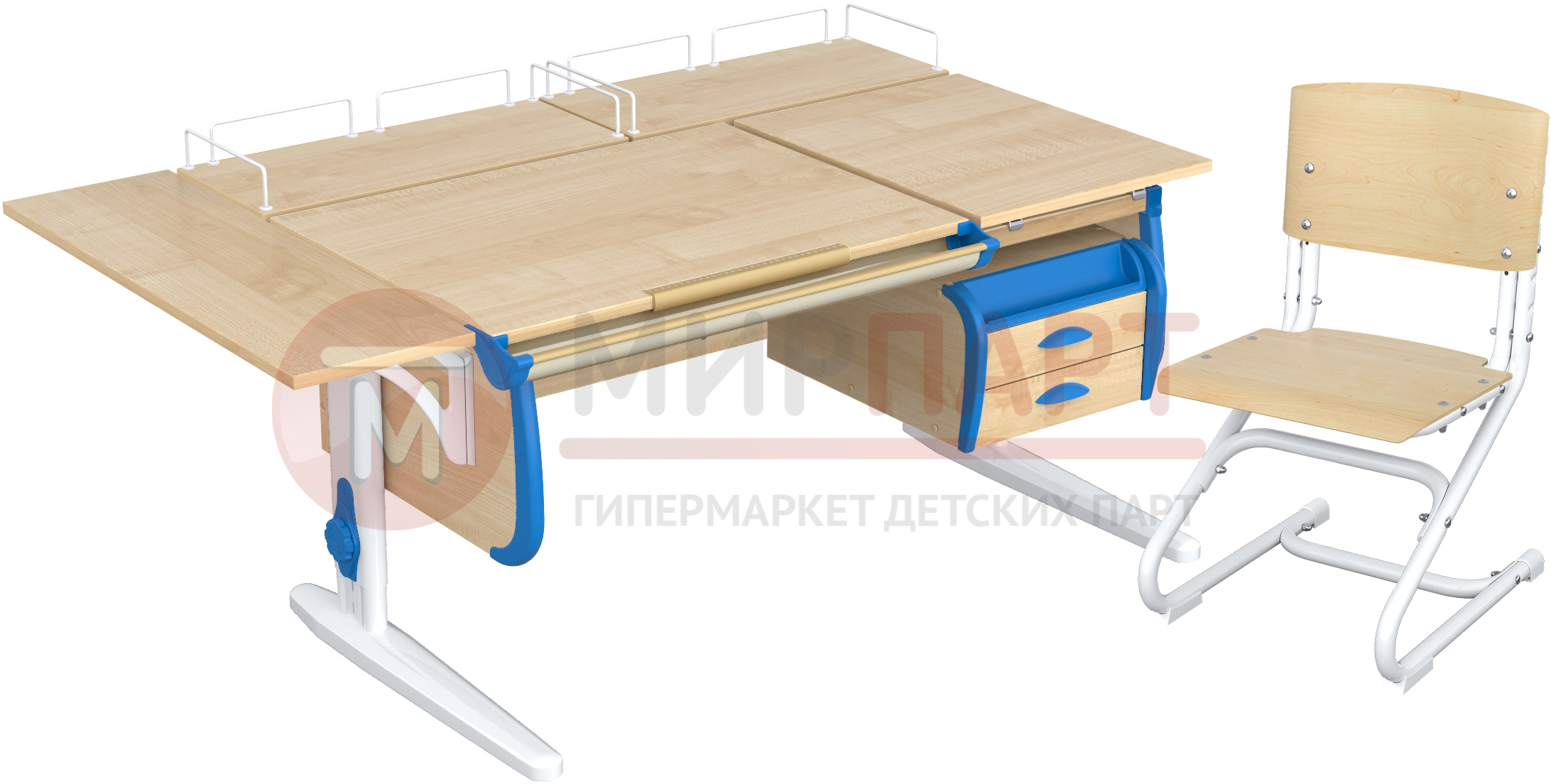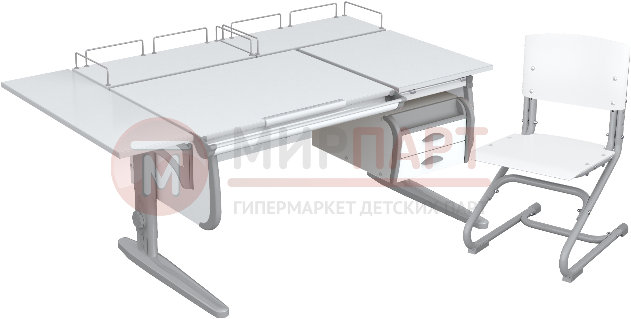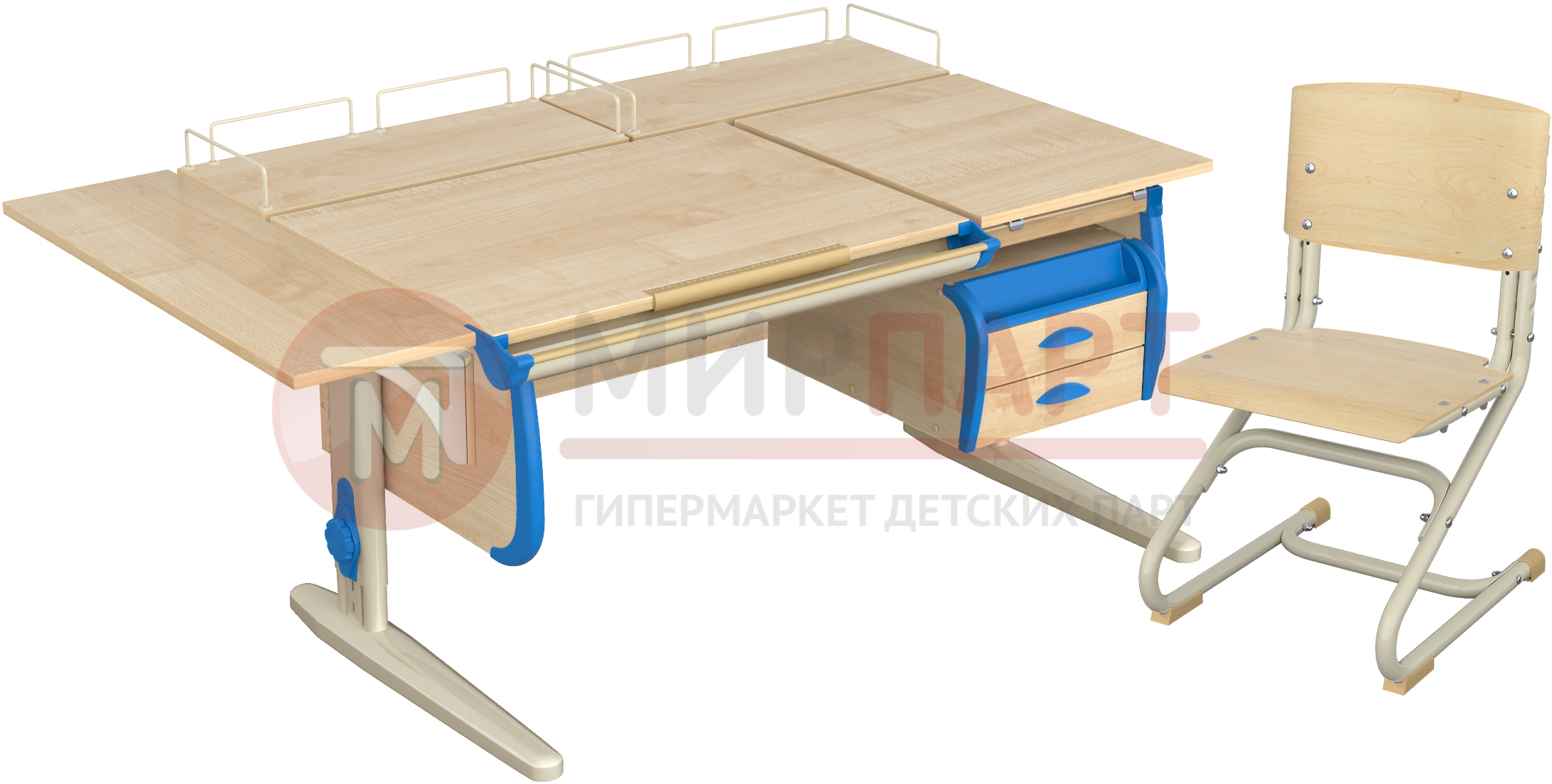 Парта 120 см с раздельной столешницей + тумба + 2 задние приставки + боковая приставка 75 см