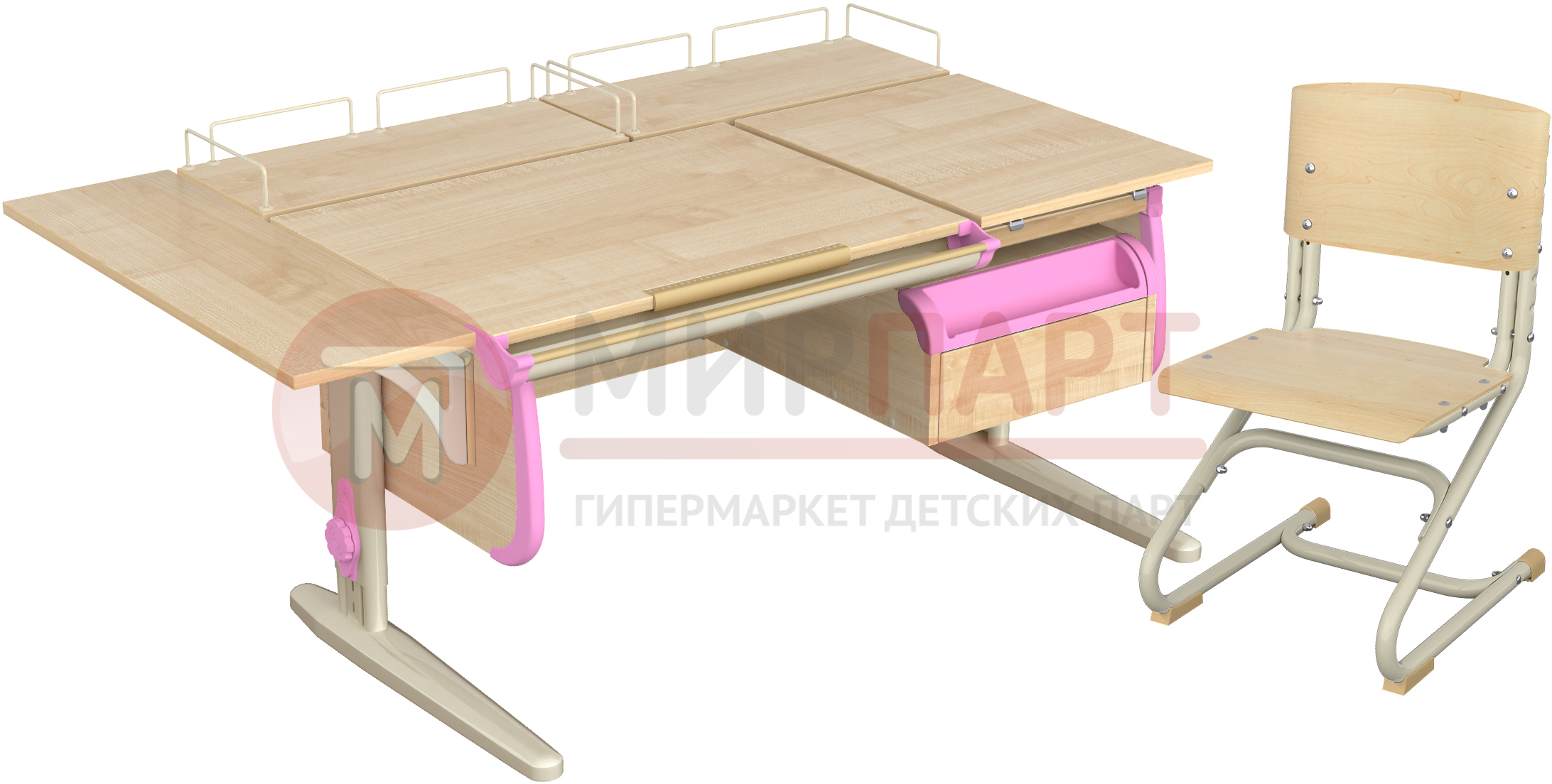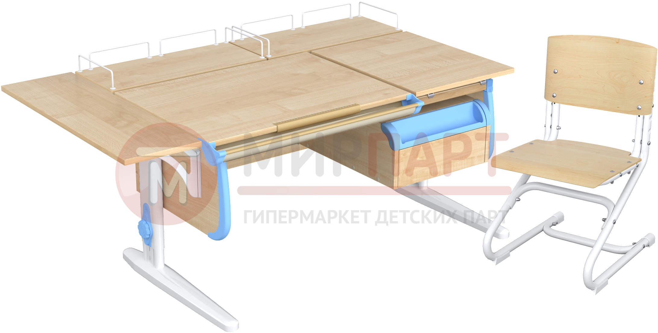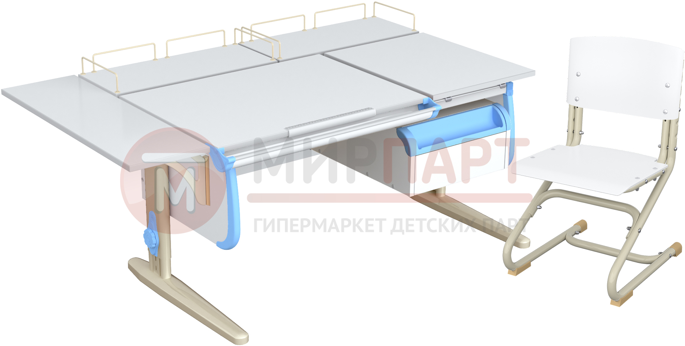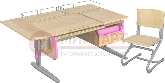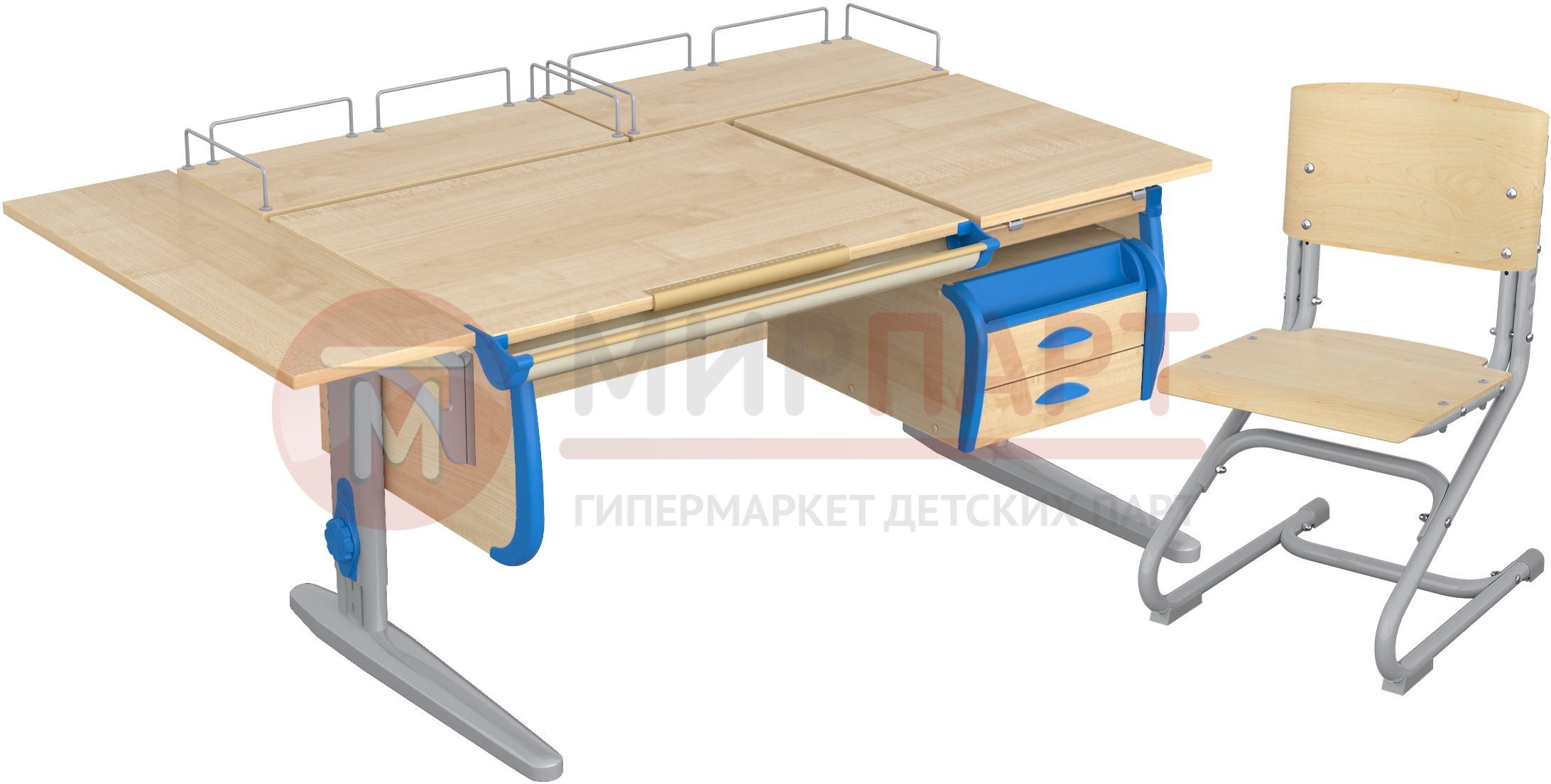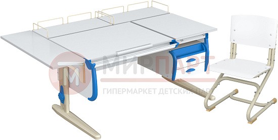 Парта 120 см с раздельной столешницей + тумба + 2 задние приставки + боковая приставка 75 см