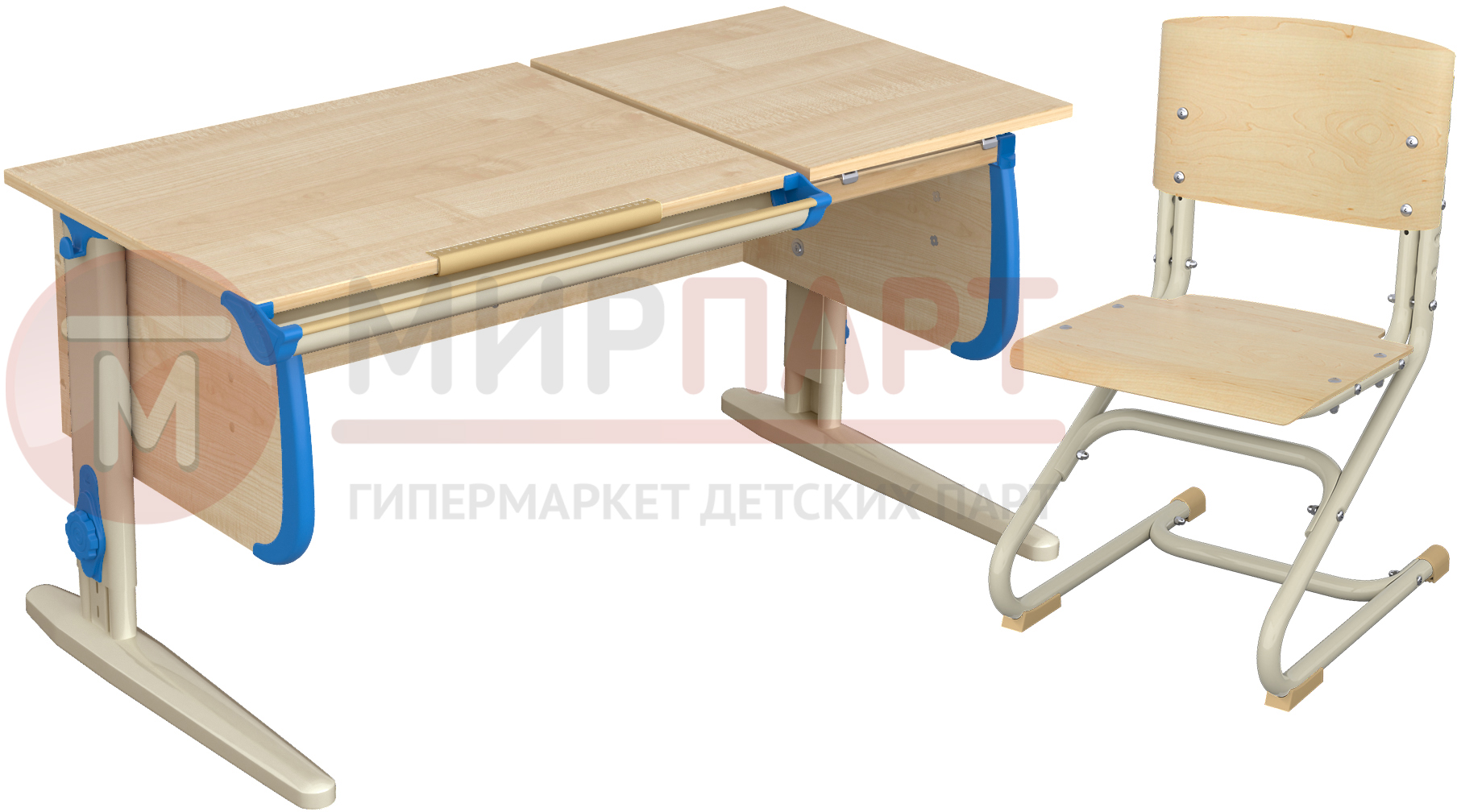 Столешница СУТ-25 состоит из двух частей: наклоняемой и жёстко закреплённой. Первая является основным рабочим пространством, вторую удобно использовать для размещения школьных принадлежностей, книг, оргтехники и офисных органайзеров. При этом неподвижная часть крышки может быть расположена как слева, так и справа – Вы сами решаете, как Вам удобнее. Более того: ширина парты позволяет заниматься одновременно двум детям.