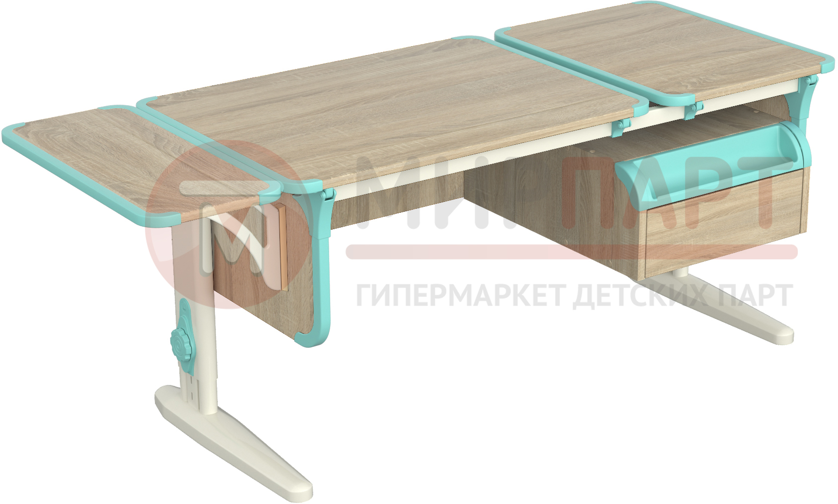 Парта 120 см с раздельной столешницей + тумба + 2 задние надстройки
