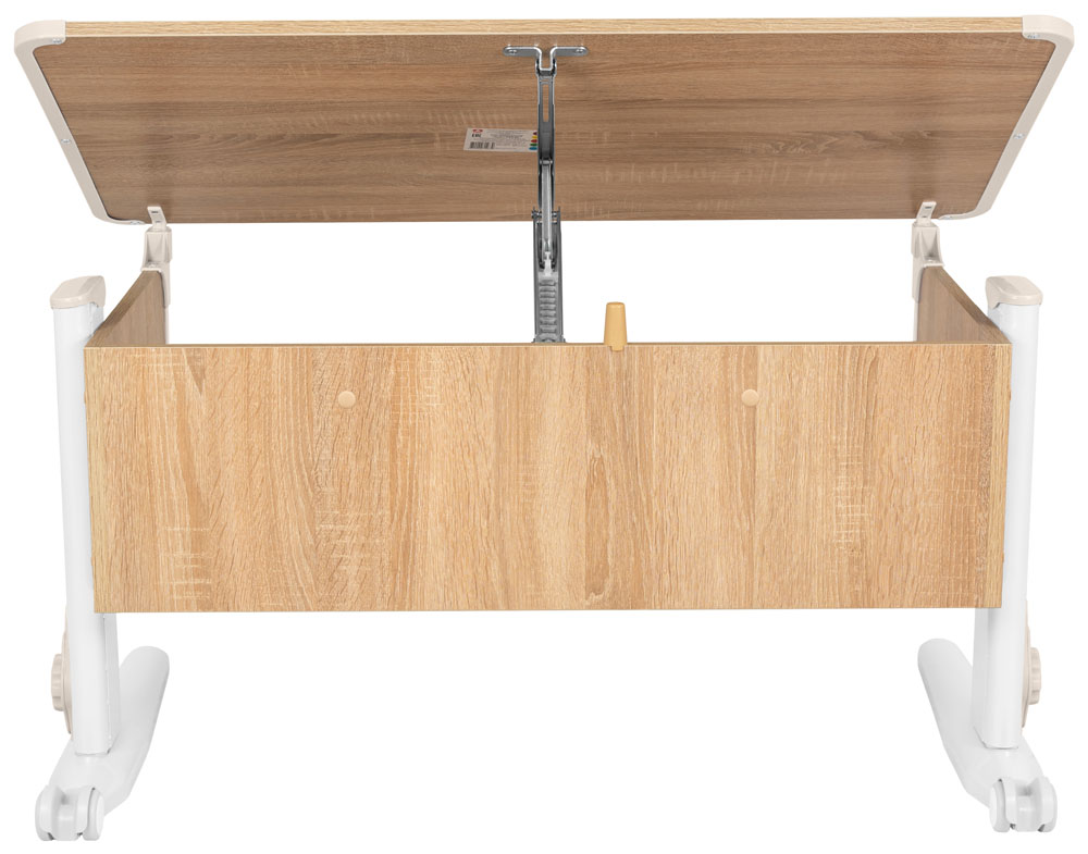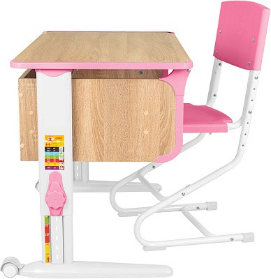 Уникальной особенностью модели «СУТ-43-01-К» является современный дизайн. Трендовые, мягкие цвет делает комнату светлее, способствует созданию рабочего настроения и не утомляет глаза ребёнка. Для снижения уровня детской травматичности предусмотрены пластиковые накладки, полиуретановый бампер, надежный многоуровневый механизм фиксации высоты.