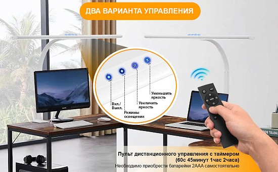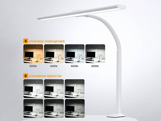 LED лампа DL-1020 - создаст комфортные условия на рабочем столе, так как работа светодиодов устроена таким образом, что не образуются блики на поверхности монитора, других гаджетов, а также на столешнице.