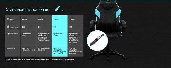 Пневматическая регулировка высоты сиденья кресла ThunderX3 EC1. Идеальна для геймеров ростом от 145 см до 175 см.
