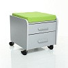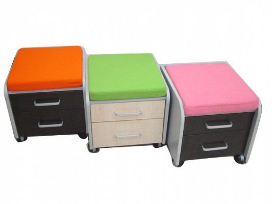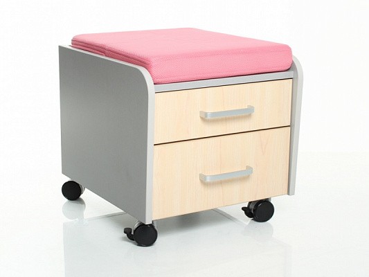 Удобство, компактность, функциональность – два вместительных ящика разместят все, что необходимо в учебном процессе. Углы и кромки скруглены, таким образом, риск случайной травмы сведен к минимуму. Кроме этого, конструкция тумбы включает в себя удобную мягкую подушку, которая превращает её в мягкий пуфик. Когда к ребенку будут приходить гости, тумбочка станет дополнительным сиденьем. Небольшие колесики позволяют легко катать тумбу по комнате, однако, если Ваш непоседа начнет на ней кататься сам, их можно заблокировать в одном положении.